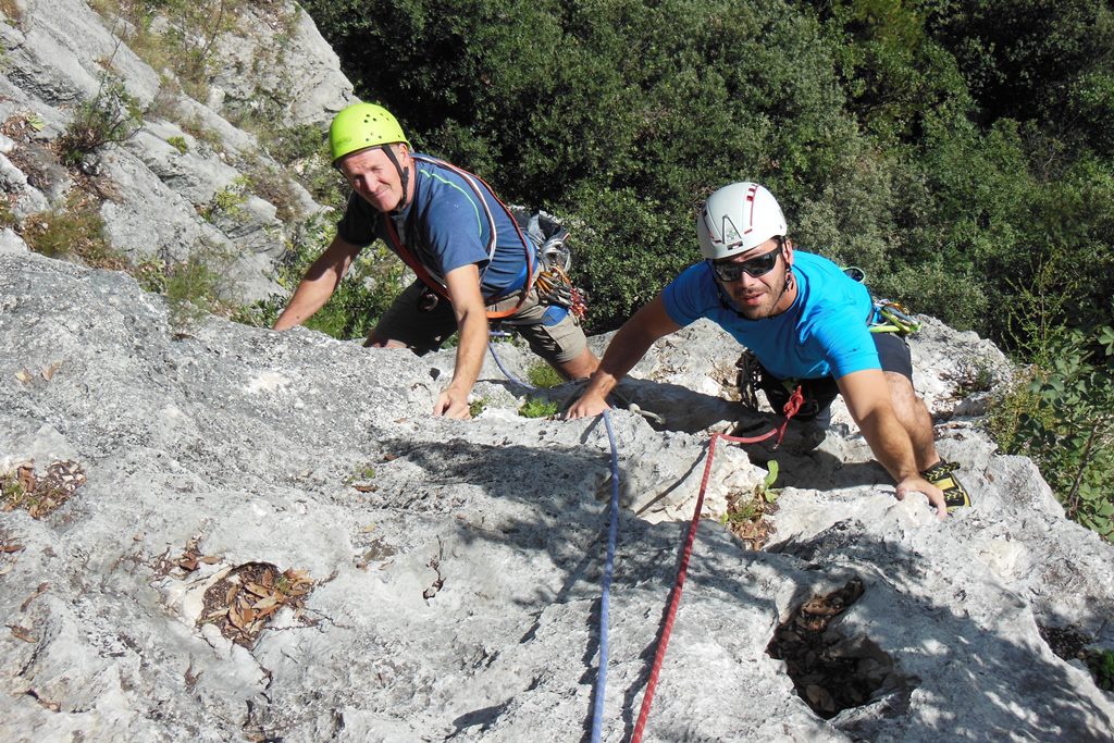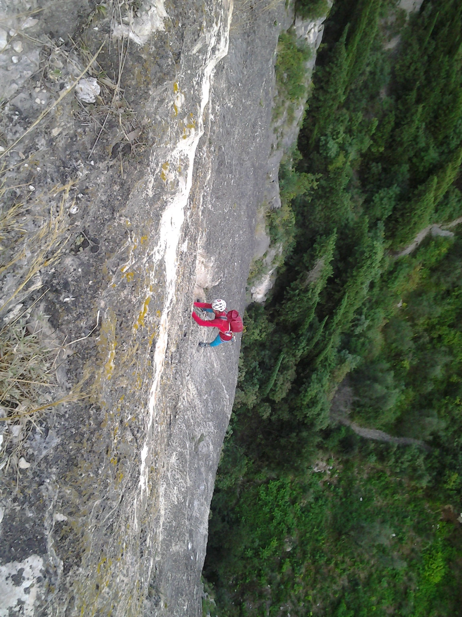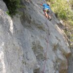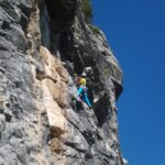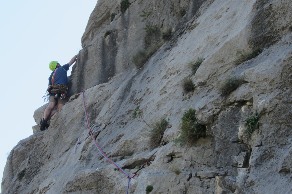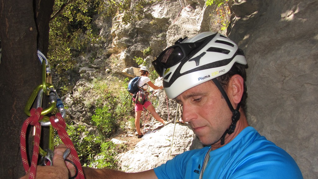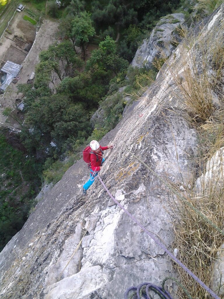 Die leider etwas überschwängliche 5 Stern Bewertung in unserem Führer führte uns zur Minuette a Ceniga. Wirklich überzeugen konnten uns die Route vier sehr schöner Längen leider wegen des vielen losen Gerölls und den drei botanischen Ausstiegslängen leider nicht. Generell hat es der Führer in diesem Sektor sehr gut mit seinen Ausführungen gemeint und nicht mit Atributen wie „hervorragen“, „absolut lohnend“ oder ähnlichem gespart.