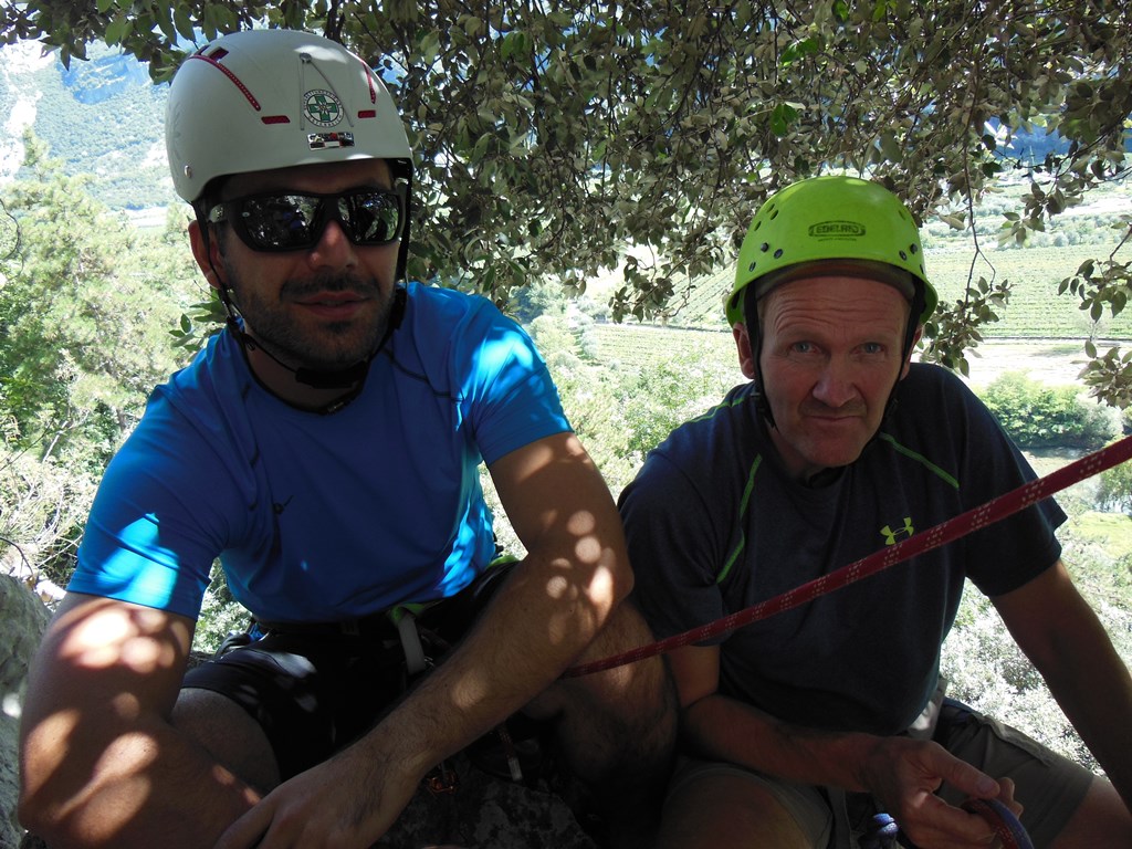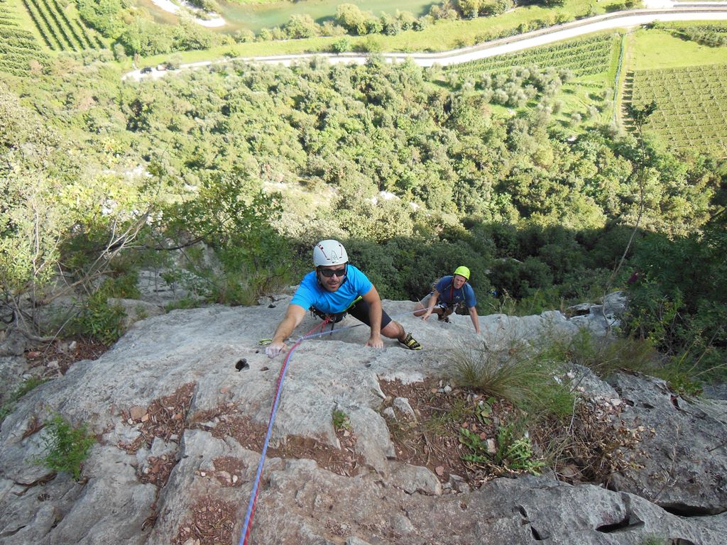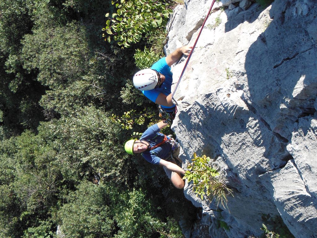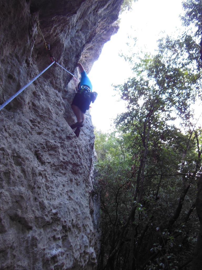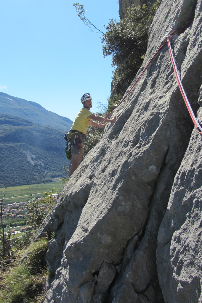 Bene und Martin nahmen die klassische Rupe Secca bzw. die Route Mescalito 7a unter die Lupe und pumpten sich dort aus. Zu guter letzt trafen wir uns dann im Gastgarten von Rucchero (La Lanterna) wo wir auch netterweise im Garten übernachten durften. Die Pizza und Spagetthi, sowie der Wein waren ausgezeichnet.