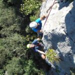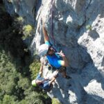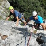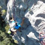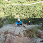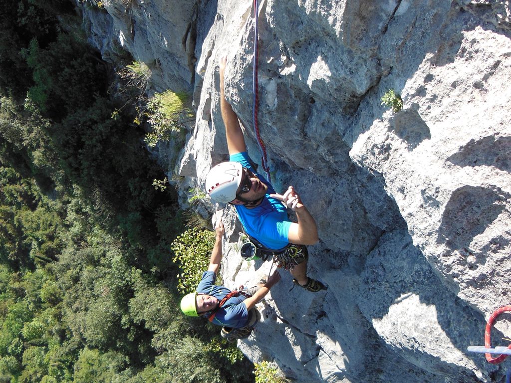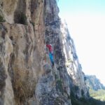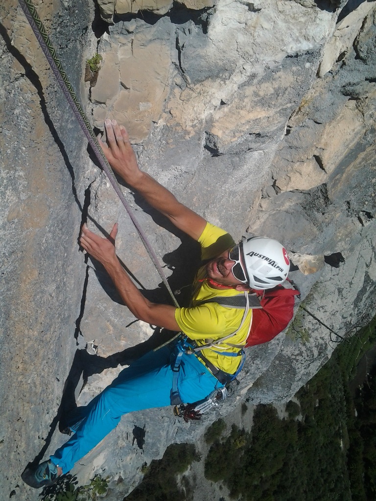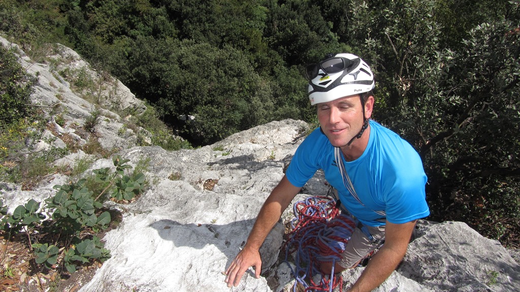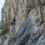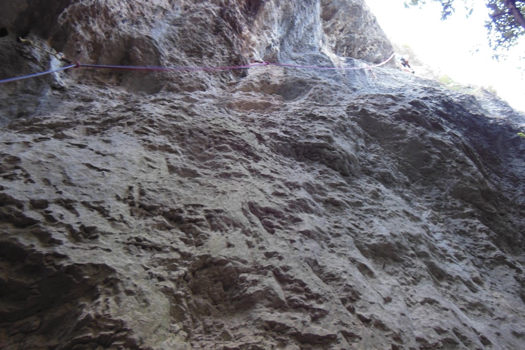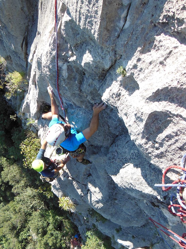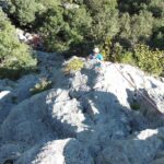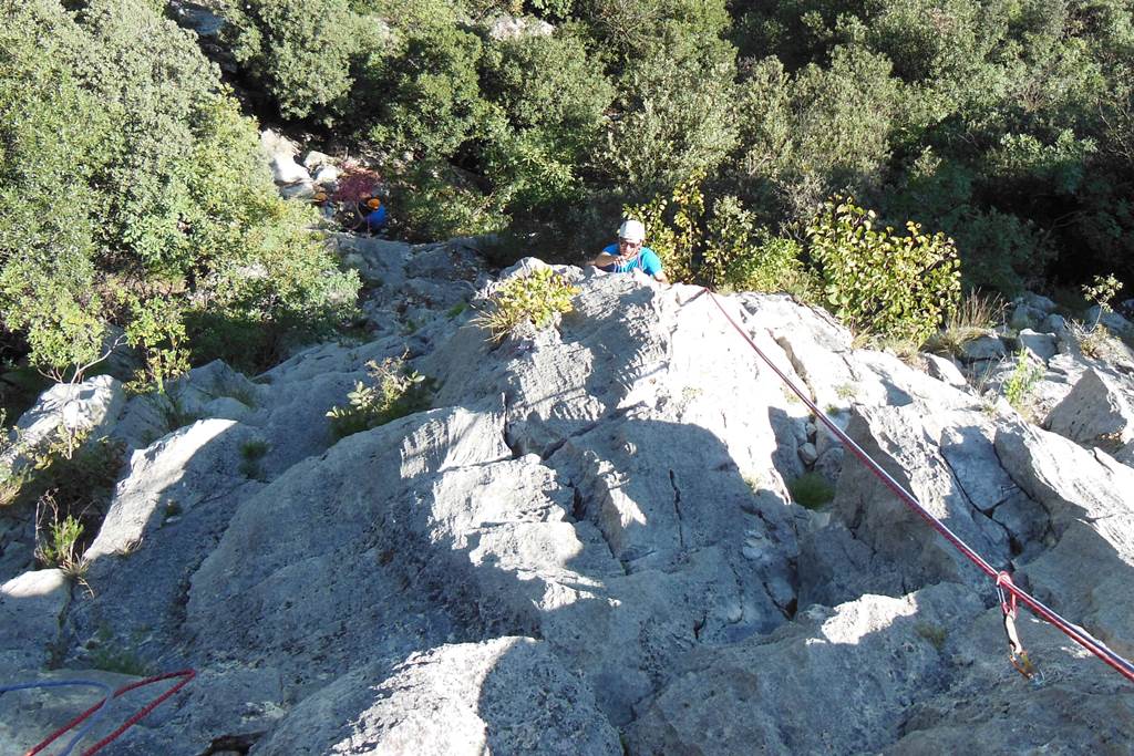 (VI (V+/A0)). Es erwartete uns eine tolle Route über 13 SL über anfangs Platten und dann eine überhängende Zone, welche sich mit zahlreichen Quergängen super auflöste. Bene und Martin zog es ebenfalls in den Südsektor von Coste dell´Anglone.