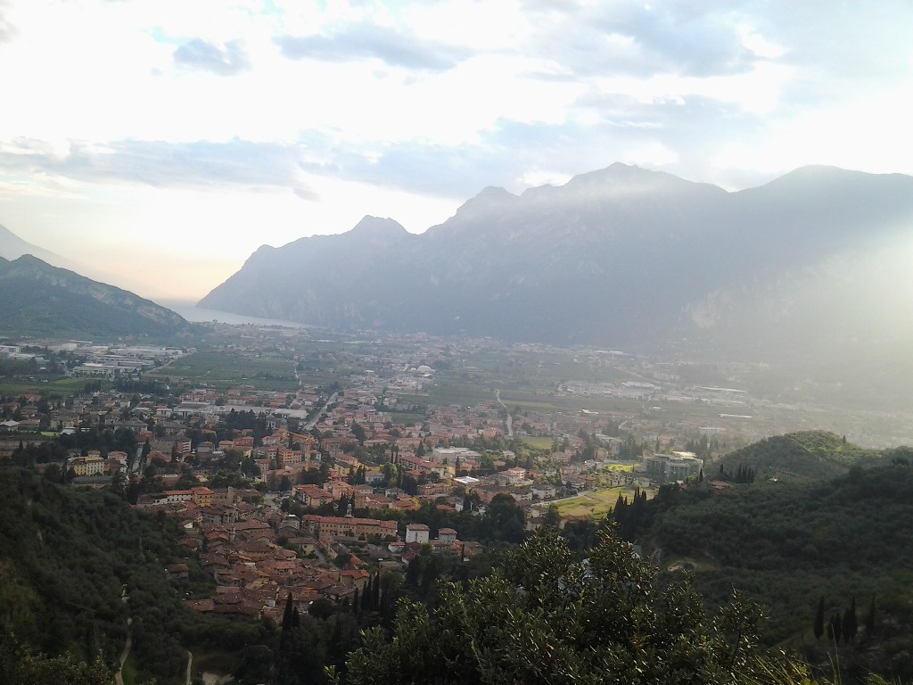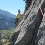 Der Sonntag brachte dann nach dem Aufstehen neue Ziele. 1stens Frühstück in Arco. 2tens die Routenwahl. Die 3er Seilschaft zog es vor nach Dro zum dortigen Campo Sportivo zu fahren und dort in die Route „Via Il Mercurio Serpeggiante“ Coste dell`Anglone einzusteigen