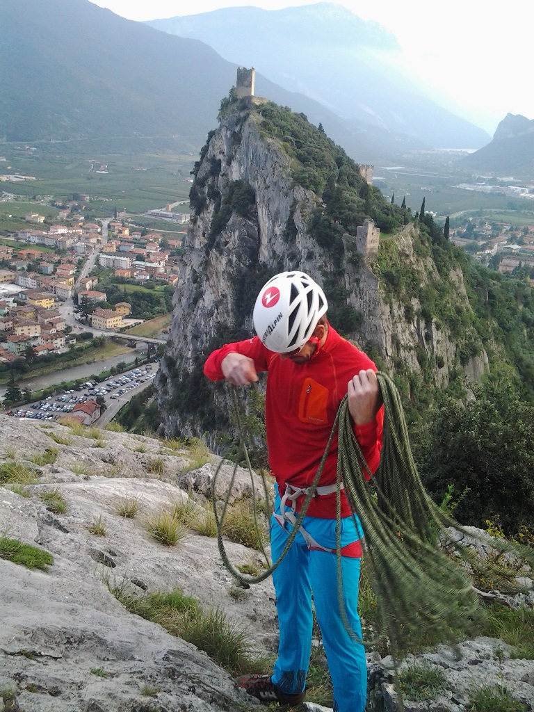 … das gute Wetter ließ es wieder einmal nicht zu das geplante Vorhaben am Falzaregopass durchzuführen. Nichts desto trotz starteten wir mit 5 Mann hoch in Richtung Süden und landeten in Arco. Dort erwartete uns wenigsten Spätsommer mit warmen Temperaturen und wolkenlosem Himmel. Nach der Ankunft in Arco und dem Einstandscafe „iats sein ma im Urlaub“ wurde eine 2er (Bene/Martin) und eine 3er-Seilschaft (Roli/Luis/Robi) gebildet und los ging´s. Die 3er startete zuerst in eine Aufwärmtour (Via Sabina V+ – San Paolo) musste jedoch auf Grund von Touristenüberfüllung am 3ten Stand in die Nachbarroute (Cengia Rossa VI) ausweichen. Zum Feierabend noch in die kurze Route „Argo“ VI eingestiegen.