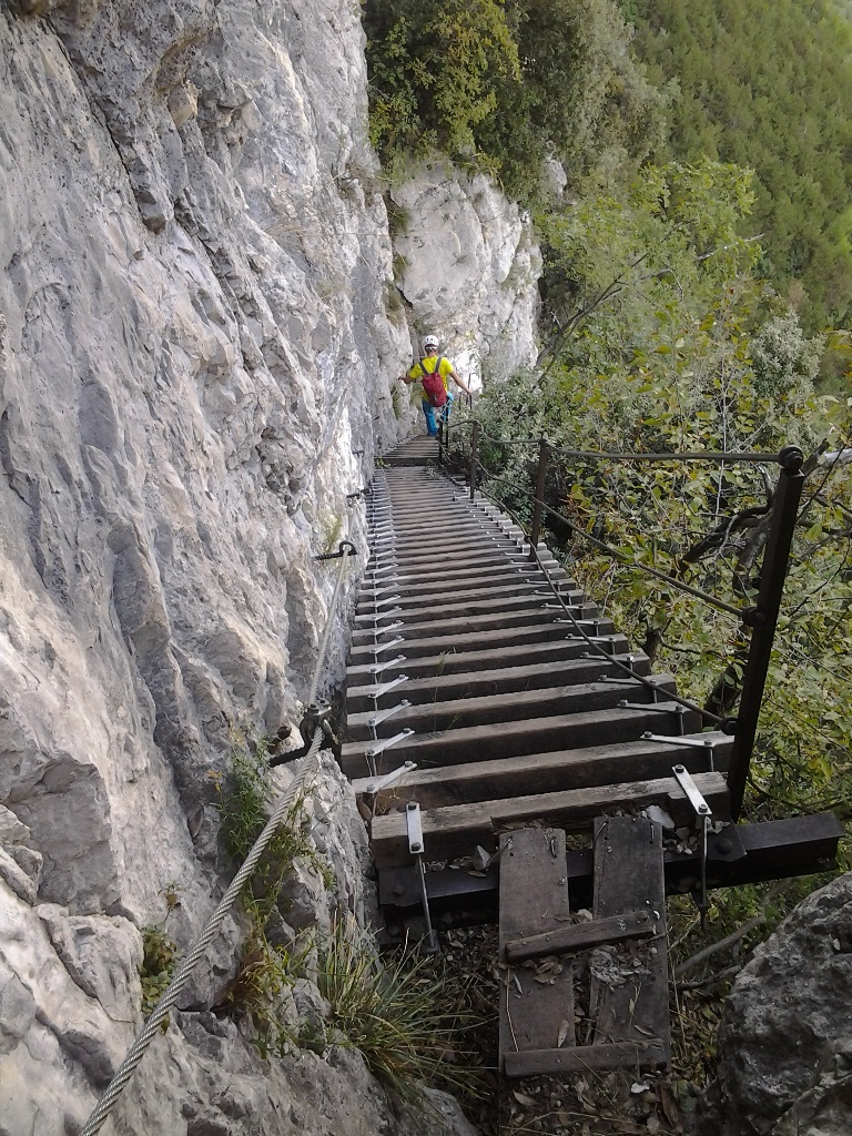 Das eigentliche Highlight der Tour war dann wohl der Abstiegt. Ein über Bänder, gehauene Stufen und etwas eigentümliche Holztreppen verlaufender Weg windet sich durch die wand zurück ins Tal. Unser Tip: Tour umdrehen – Auf dem Weg nach oben und über die Tour abseilen 🙂