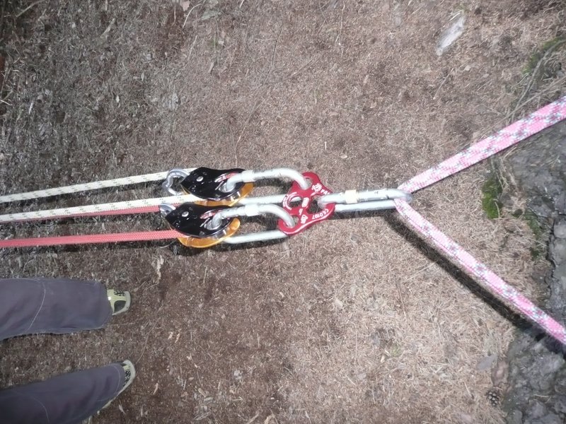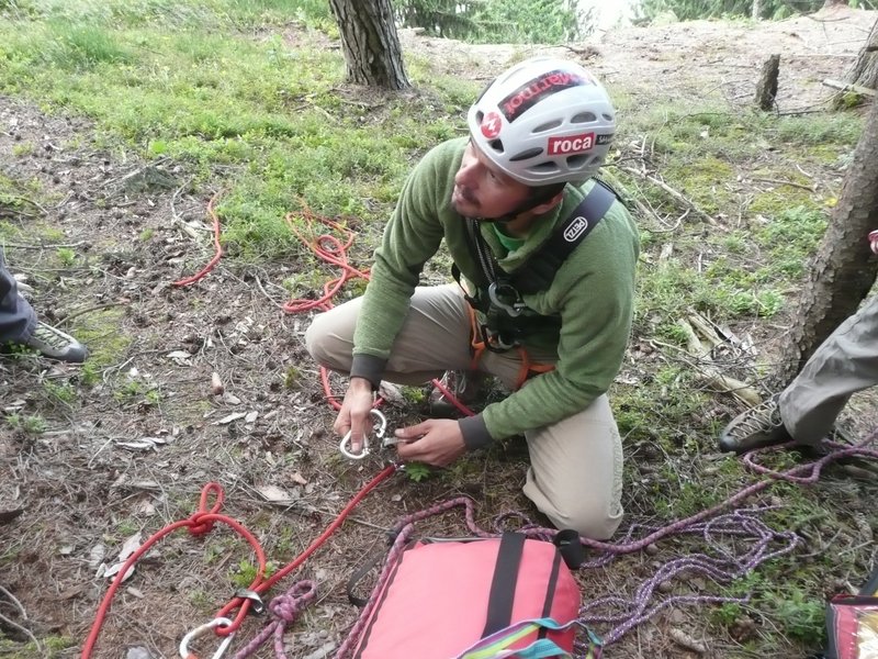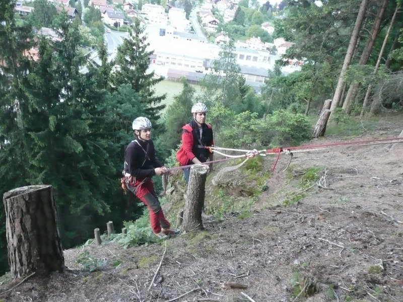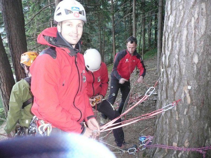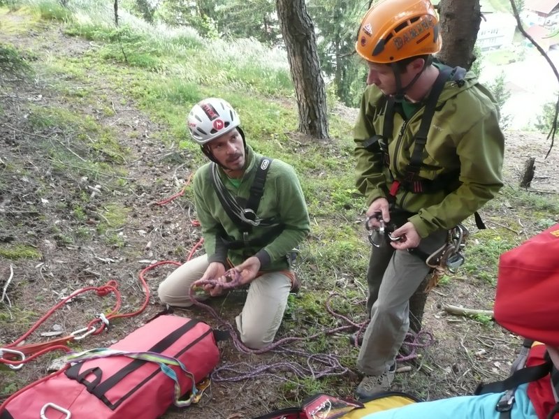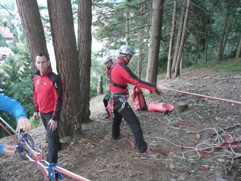 … zur Auffrischung der behelfmäßigen Kameradenrettung ( Seilrolle, Seilrollenflaschenzug …. ) wurde der Bergrettungsabend im Bereich des Klettergartens genutzt.