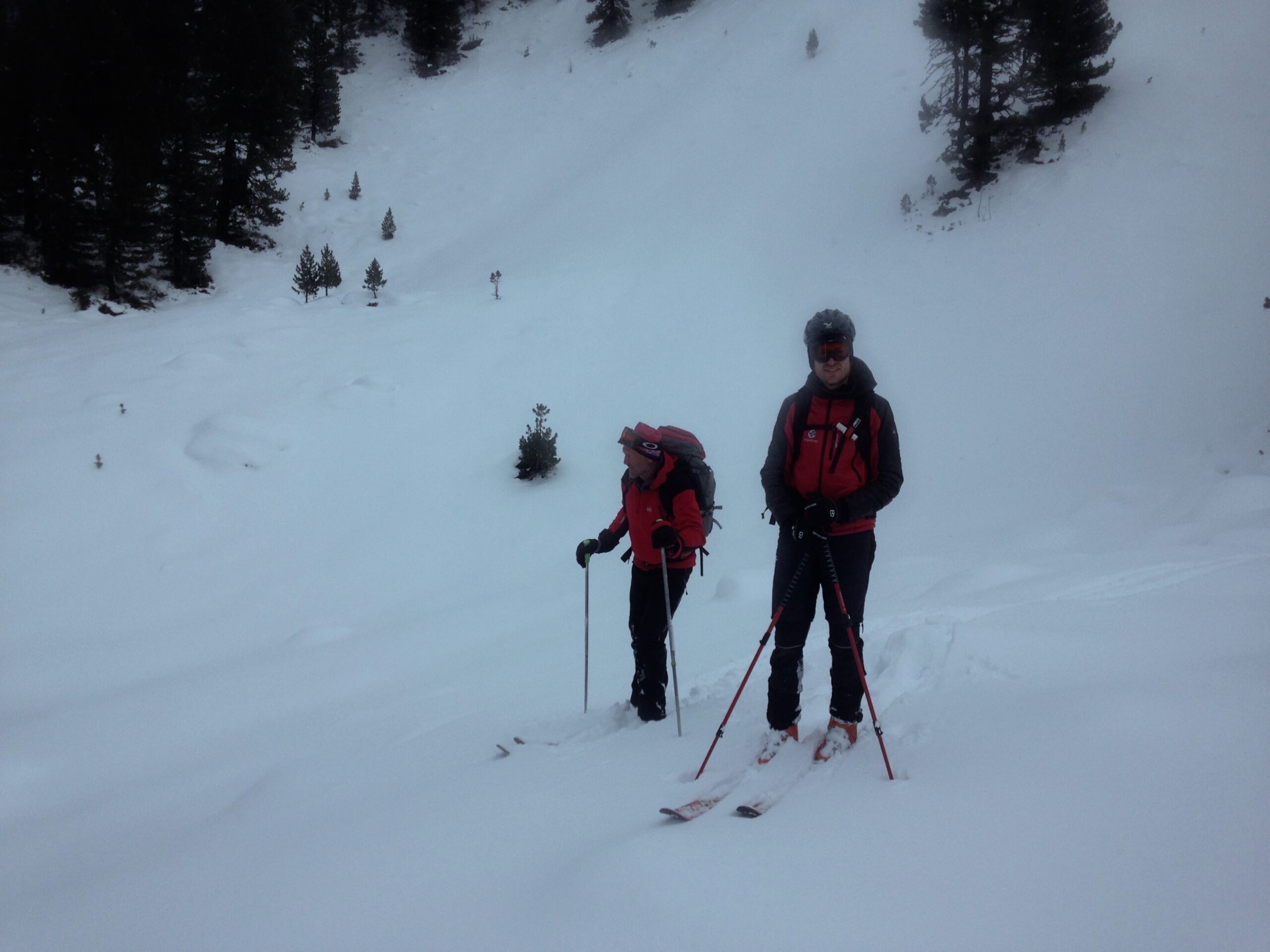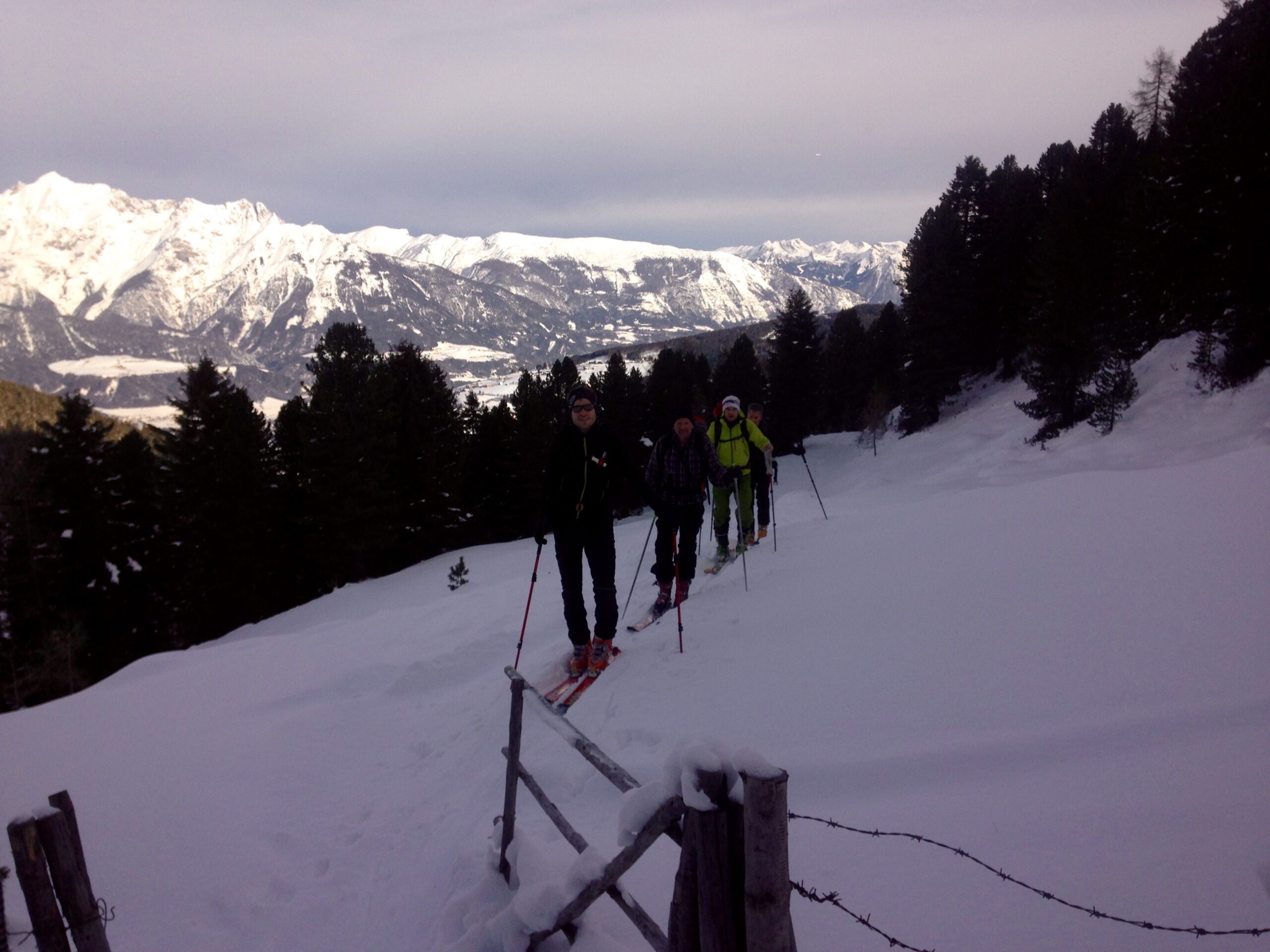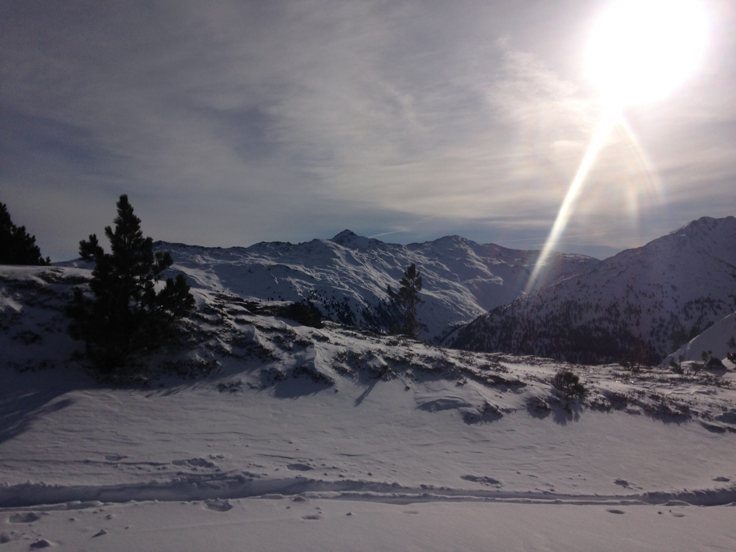 Am 24.Jänner 2016 wurde kurzfristig zu einer Bergrettungsskitour ins Kolsasstal einberufen, um das Gelände samt Schneequalität zu prüfen. Der Weg auf die Studlalm ist gut geräumt und gut befahrbar – nicht zu tief nieder geschert wie in den vergangenen Jahren. Die Spur auf den Hillary Point ist gut und angenehm zu gehen. Am Kreuz konnten wir die Sonne genießen – bis der Südwind uns zum Aufbrechen veranlasste. Wir spurten noch ein paar Meter südwärts Richtung Wildofen, wo wir einige Wumm Geräusche vernehmen konnten. Wir entschieden uns nordwärts abzufahren. Generell fanden wir, wie beim Aufstieg schon erkennbar, grundlosen Pulverschnee vor, dieser war aber doch insgesamt schön zu fahren.