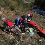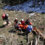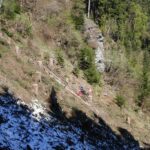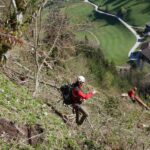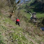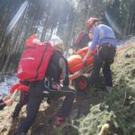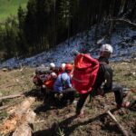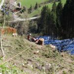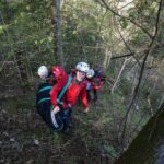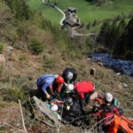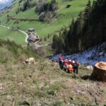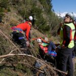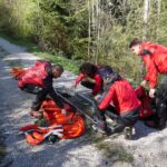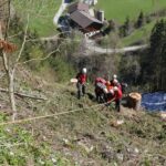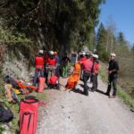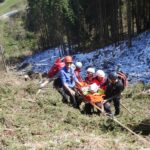 Im Zweiten Teil des Übungstages ging es um die Bergung eines verletzten Holzarbeiters aus einem Holzschlag. Dieser wurde zweimal mit ausgewechselter Berge- und Standmannschaft durchgeführt.