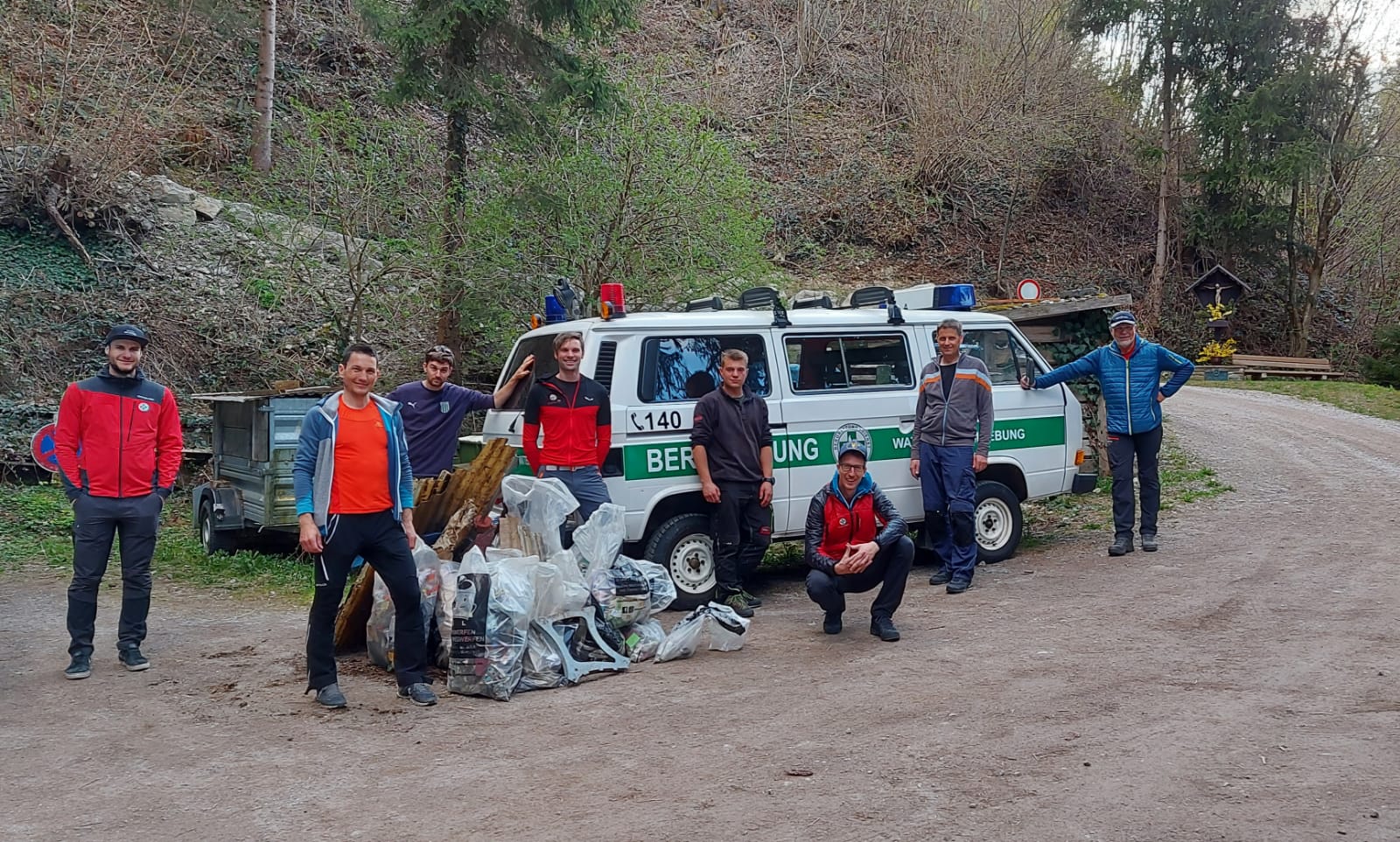 Am Abend des 21.04.2021 traf sich eine kleine Gruppe von Bergrettern unter Einhaltung der aktuellen Covid-Bestimmungen zum Alljährlichen Frühjahrsputz. Um die Bereiche des Parcour’s, der Räthersiedlung, des Klettergartens, des Verlobungs und Schützensteigl’s und unterhalb der Aussichtsplattform vom Müll zu säubern. Der Bereich der Plattform ist immer wieder eine kleine Herausforderung sowohl Geländemäßig aber auch was die Müllmenge betrifft…