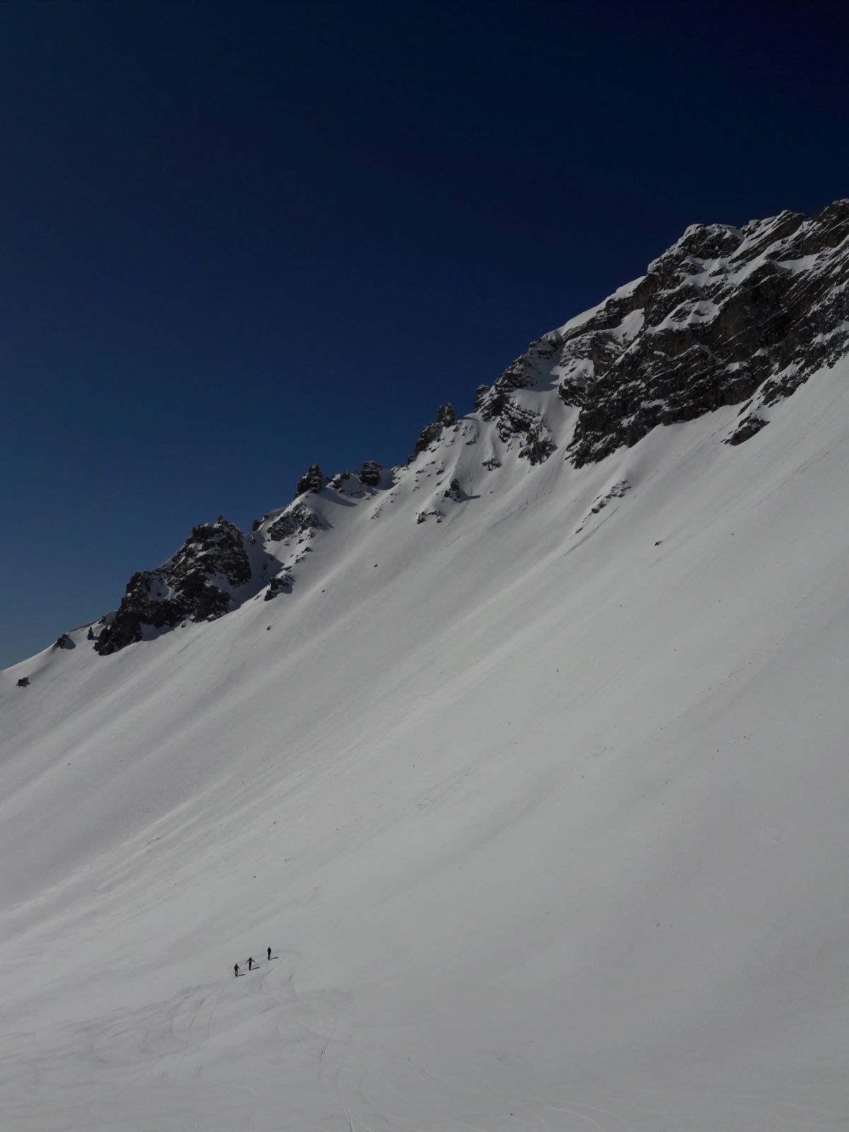 Kurzentschlossen veranstaltete die Bergrettung Wattens u. Umgebung am 7.4.2018 eine Schulungstour auf die Serles. Der Aufstieg erfolgte über den Normalweg, gestartent wurde kurz unter Waldrast bei der Ochsenalm. Aufstieg bis zum Sattele, dann wurden die Skier am Rucksack für einen kurzen Gratanstieg verstaut. Der Mittelteil erfolgte dann auf eher harten Verhältnissen wieder mittels Fellen. Der Schlussanstieg wieder mit geschulterten Skiern bis zum Gipfel.