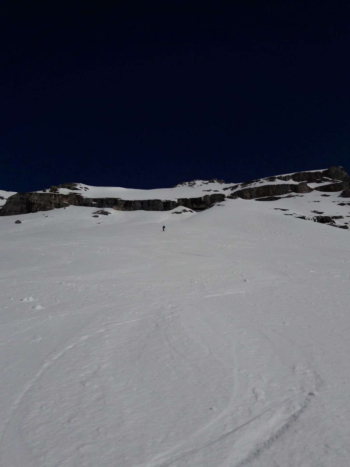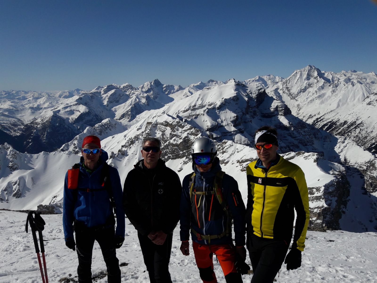 Bei perfekter Fernsicht über die Stubaier, Ötztaler bis hin zu den Dolomiten genossen wir die Gipfelpause bis es zu Firnen begann.Dann konnten wir endlich die lässige Abfahrt zurück ins Tal antreten.
