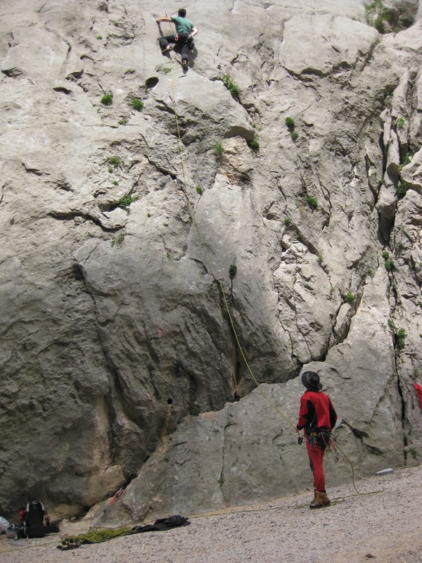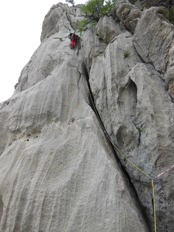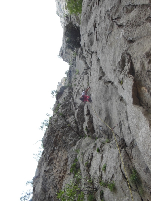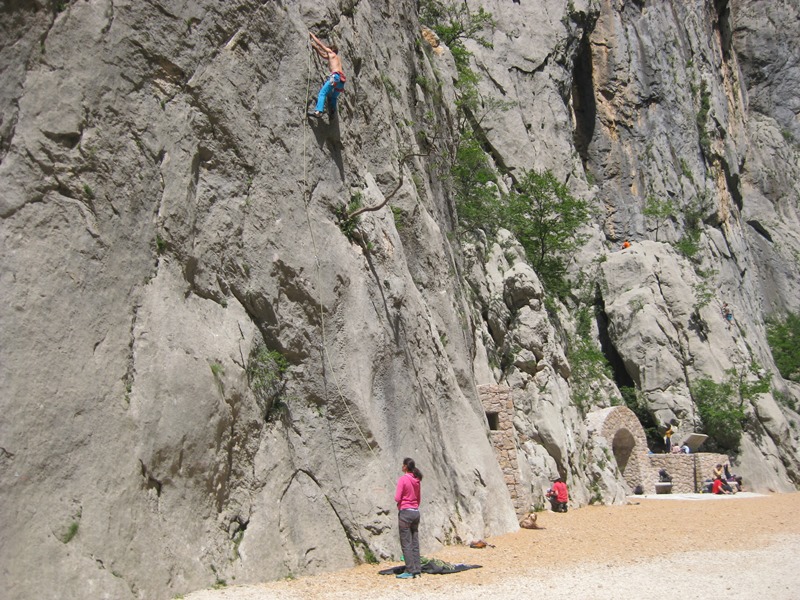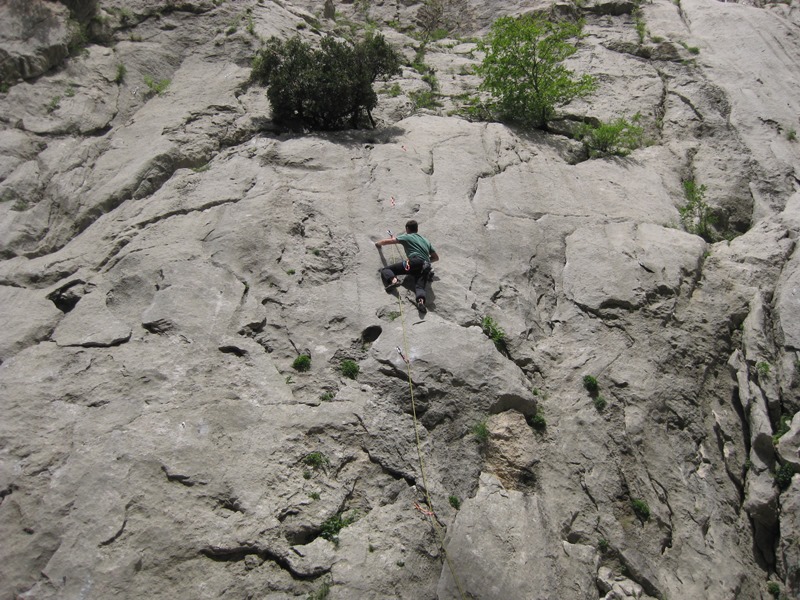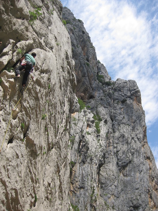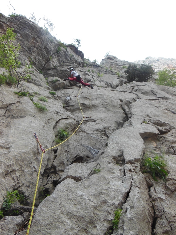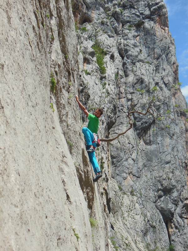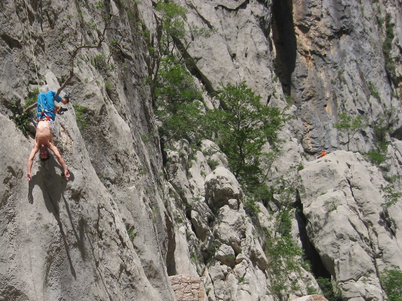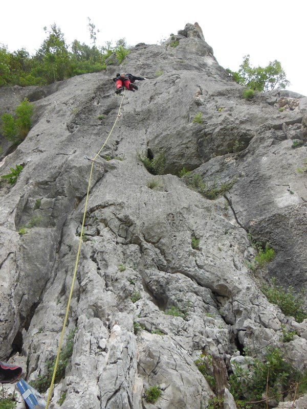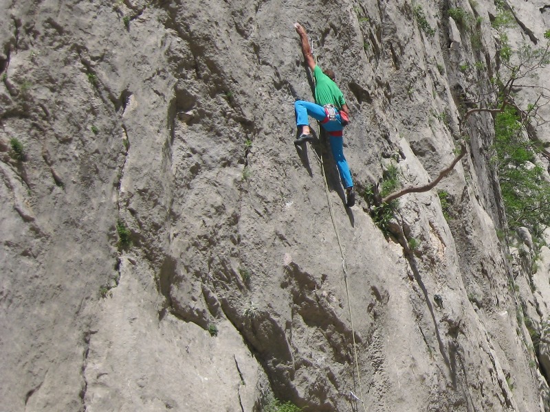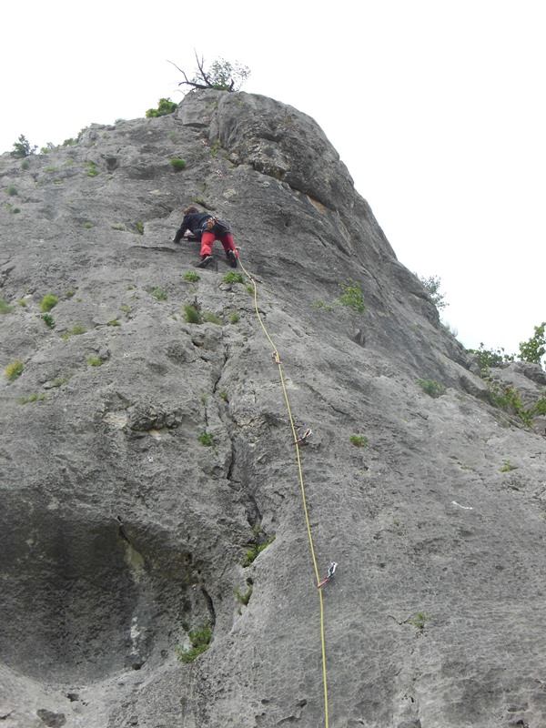 mit einer kleinen Mannschaft (Bene, Melle, Gerhard und Robert) starteten wir am 12.05 nach Kroatien. Das Vorhaben war eigentlich die Paklenica Schlucht. Nach einem ersten tollen Klettertag in der grünen Schlucht überrollte uns über Nacht jedoch die Bora. Vor allem Gerhard hatte das in seinem Zelt zu büßen. Nächtliche Flugmanöver waren angesagt (dafür hatte er Meerblick). Nach einer Wanderung in die hintere Paklenica und noch ein paar Kletterrouten entschlossen wir uns wegen der anhaltenden Bora für den Wechsel hinauf nahe Buzet. Bene wusste, dass dort ein paar österr. Kletterer neue Gebiete erschlossen hatten. Auf der Fahrt Richtung Norden über die Küstenstrasse konnte auf Höhe Karlobag im nördlichen Velebit noch ein Klettergebiet gesichtet werden, wo wir wieder neue, rauhe, noch unbekannte Routen klettern konnten. Am Abend ging es dann weiter über Rijeka nach Buzet, wo ein traumhafter Klettertag im frisch erschlossenen Klettergebiet Kamen vrata folgte. Wahnsinns Fels in tagen zuvor gebohrten Routen. Die Nacht verbrachten wir am Camping Motovun wo wir samstags in Richtung Heimat fuhren. Am Weg nahmen wir noch das Klettergebiet oberhalb von Buzet – Raspadalica – mit. Dort ist ein Felsgürtel mit zahlreichen Sektoren zu finden. Auf der Felskante der Hochebene von Cicarija befindet sich ein kleiner Campingplatz am Startplatz für Hänge- und Paragleiter. Ebenso ist das der Ausgangspunkt für die Klettereien. Am frühen nachmittag ging es dann wieder über Slowenien Richtung Heimat.