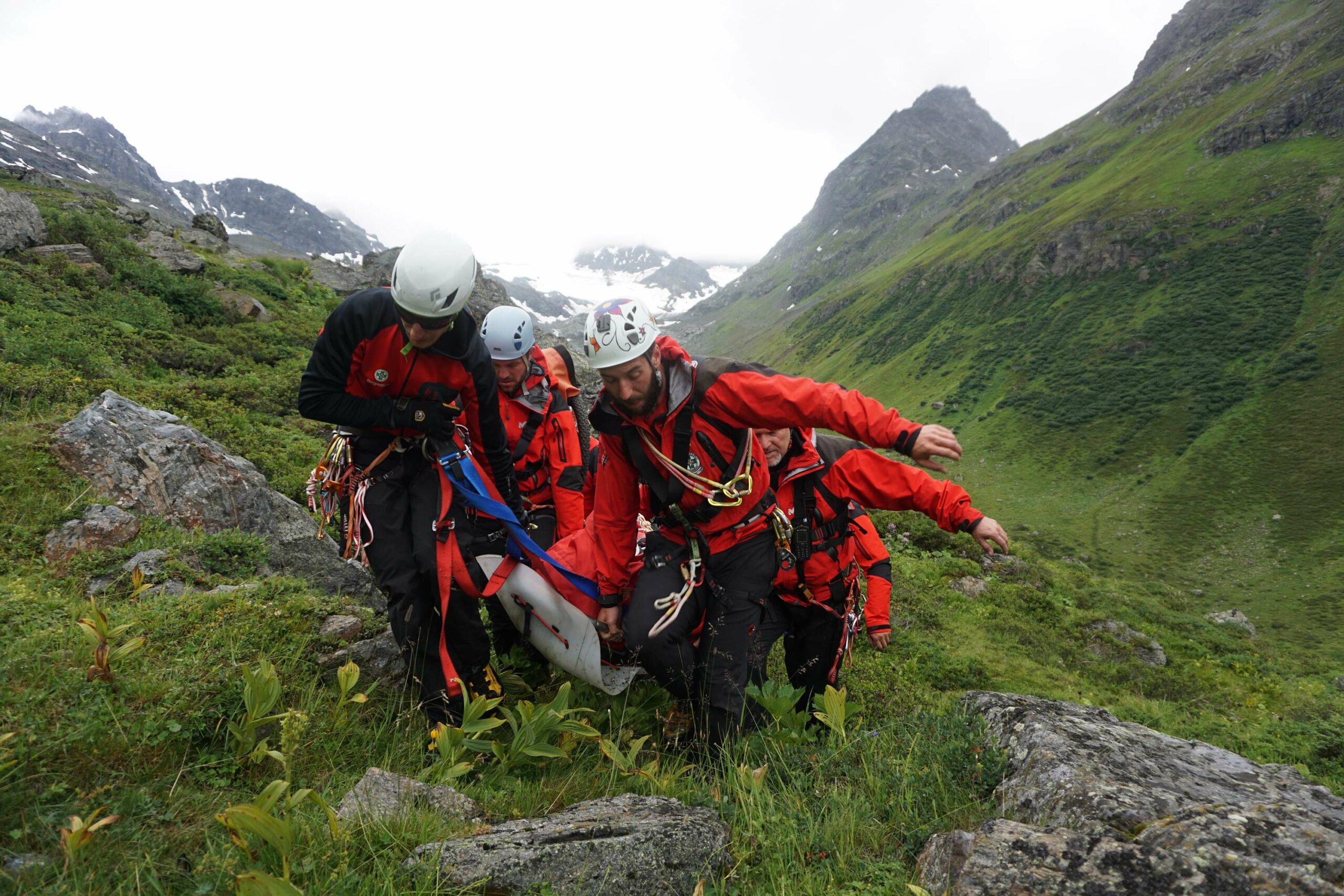 Es haben 5 (Andi S., Christian, Dominik, Gerold, Martin) Bergrettungsmänner der Ortsstelle Wattens teilgenommen und ihre Techniken und ihr KnowHow verfeinert.