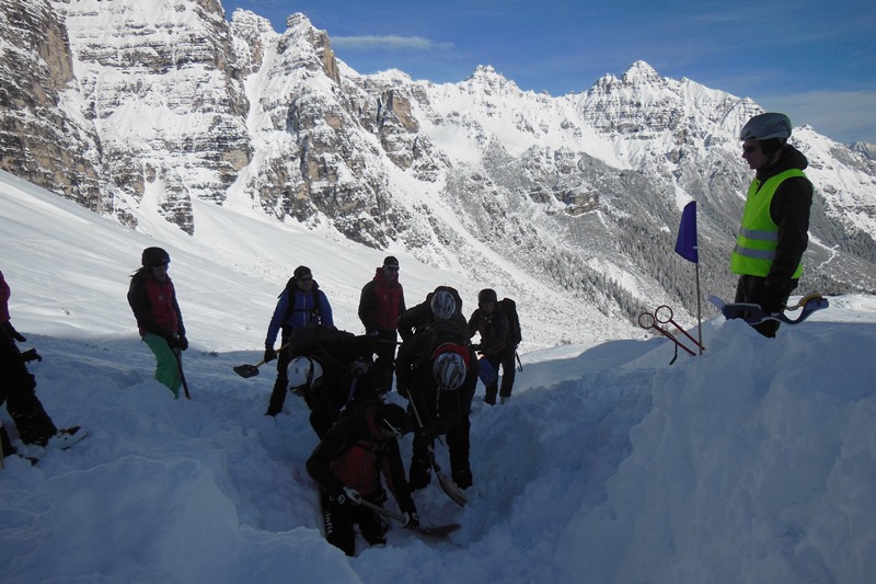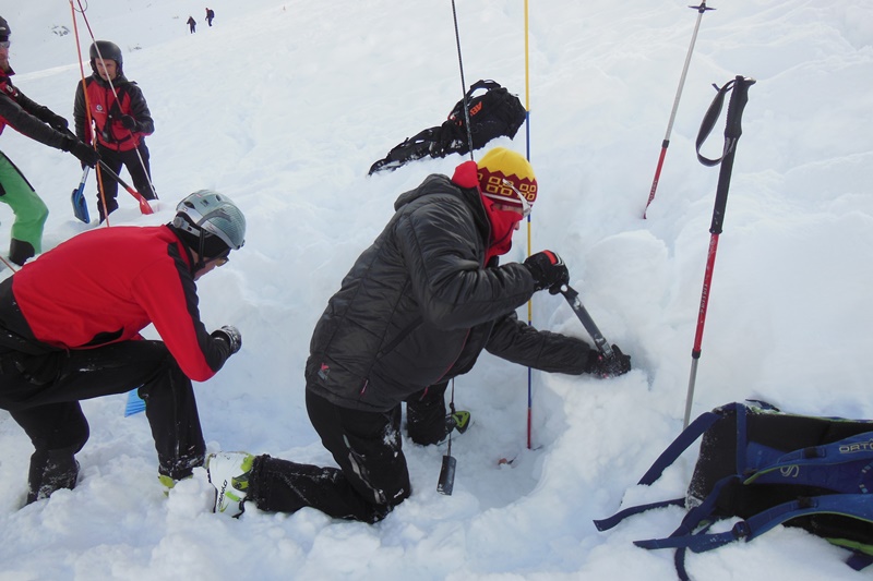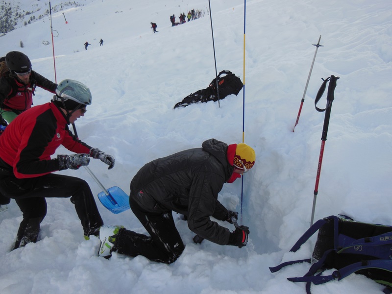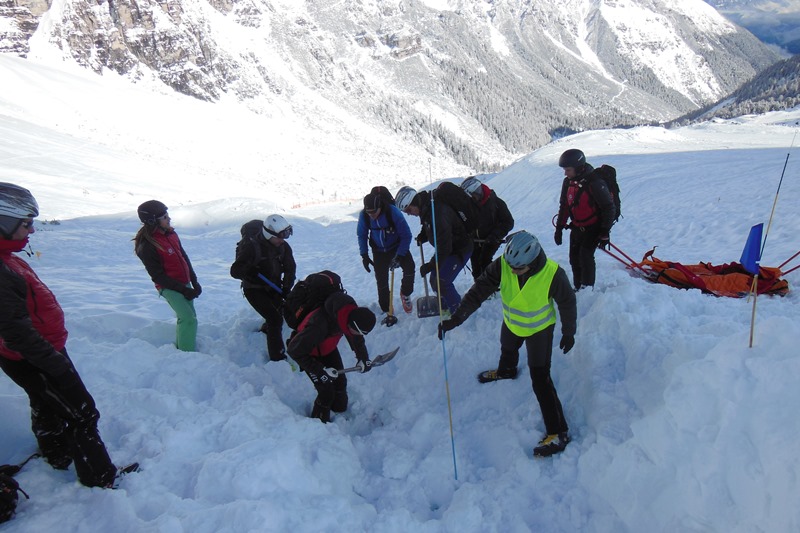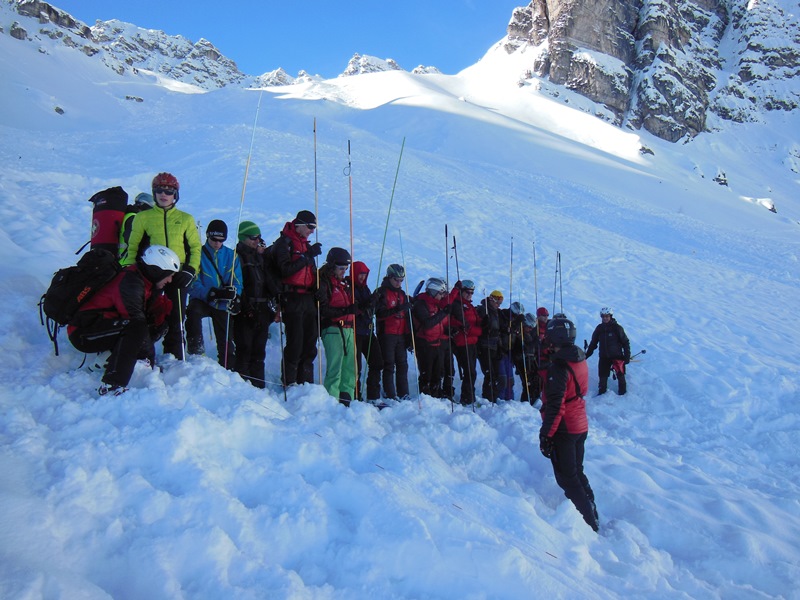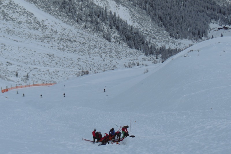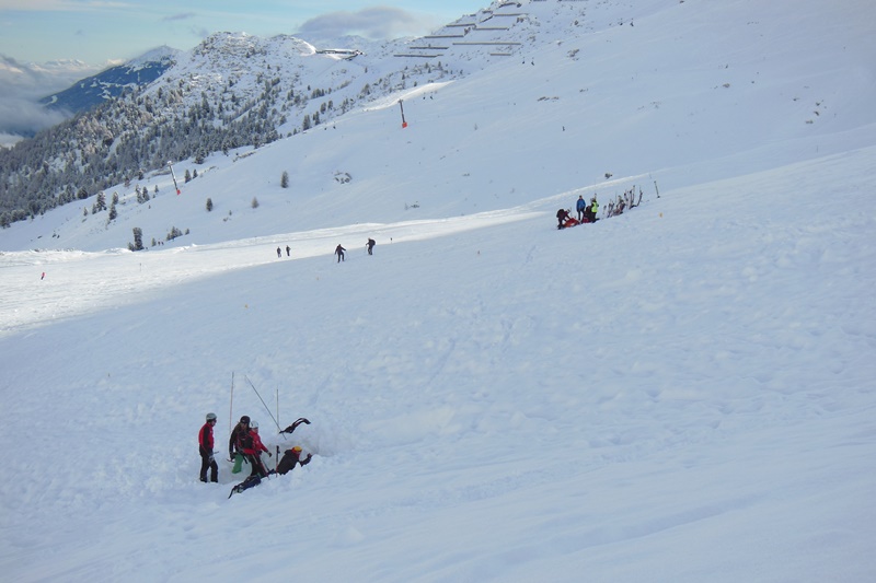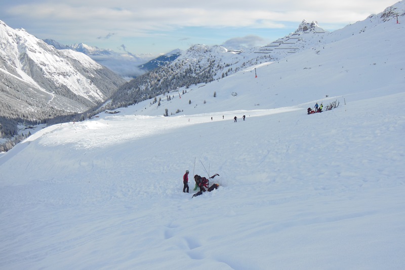 17 Bergretter der Ortsstelle und 2 Schnupper-Bergretter trafen sich am Samstag zur jährlichen Übung des „planmäßigen Lawineneinsatzes“. Auf Grund des Schneemangels im Inntal und dem Lawinenereignis in der Schlick wurde dieser Lawinenkegel als Übungsgelände gewählt. Gestartet wurde der Einsatz um 10:00 Uhr am Einsatzort. Nach bereits 30 min. waren 5 Verschüttete, welche ein LVS verwendeten geborgen. Die Suche eines weiteren Verschütteten, welcher kein LVS bei sich trug, machte eine Sondierung notwendig. Auch diese Aufgabe konnte nach 40 min. abeschlossen werden. Weiters wurde die Schaufeltechnik (Schneeförderband), die Bergung des Verletzten und Lagerung in Bergesack und Akja, sowie die Reanimation geübt. Abgeschlossen wurde die Übung mit einer Akjafahrt vom Unfallort hinunter zur Schlicker Alm und weiter bis zur Talstation.