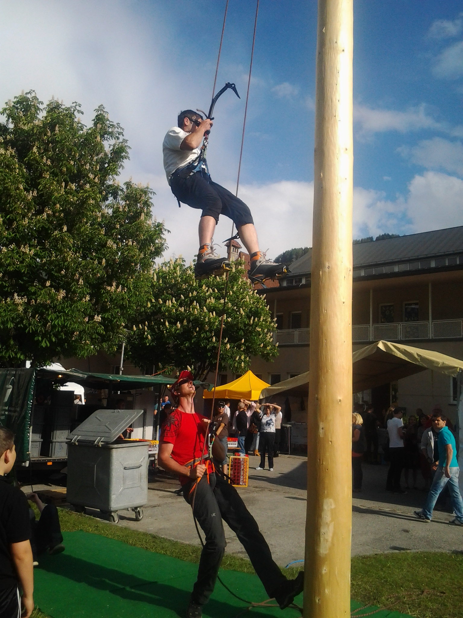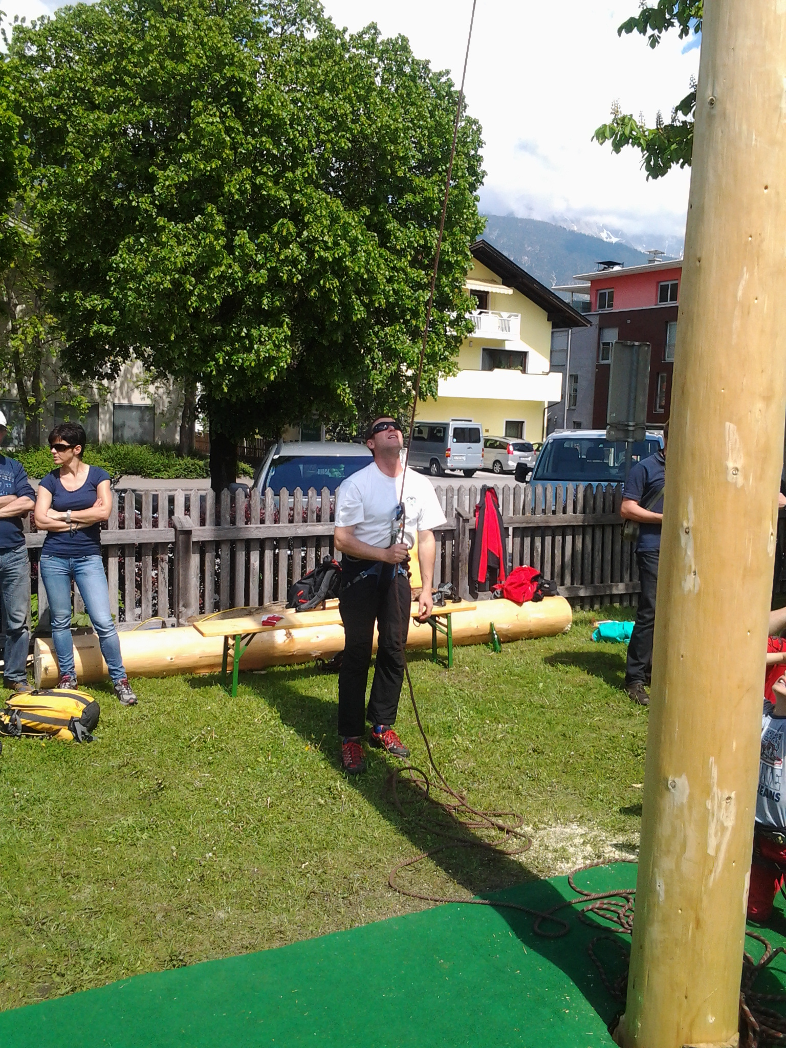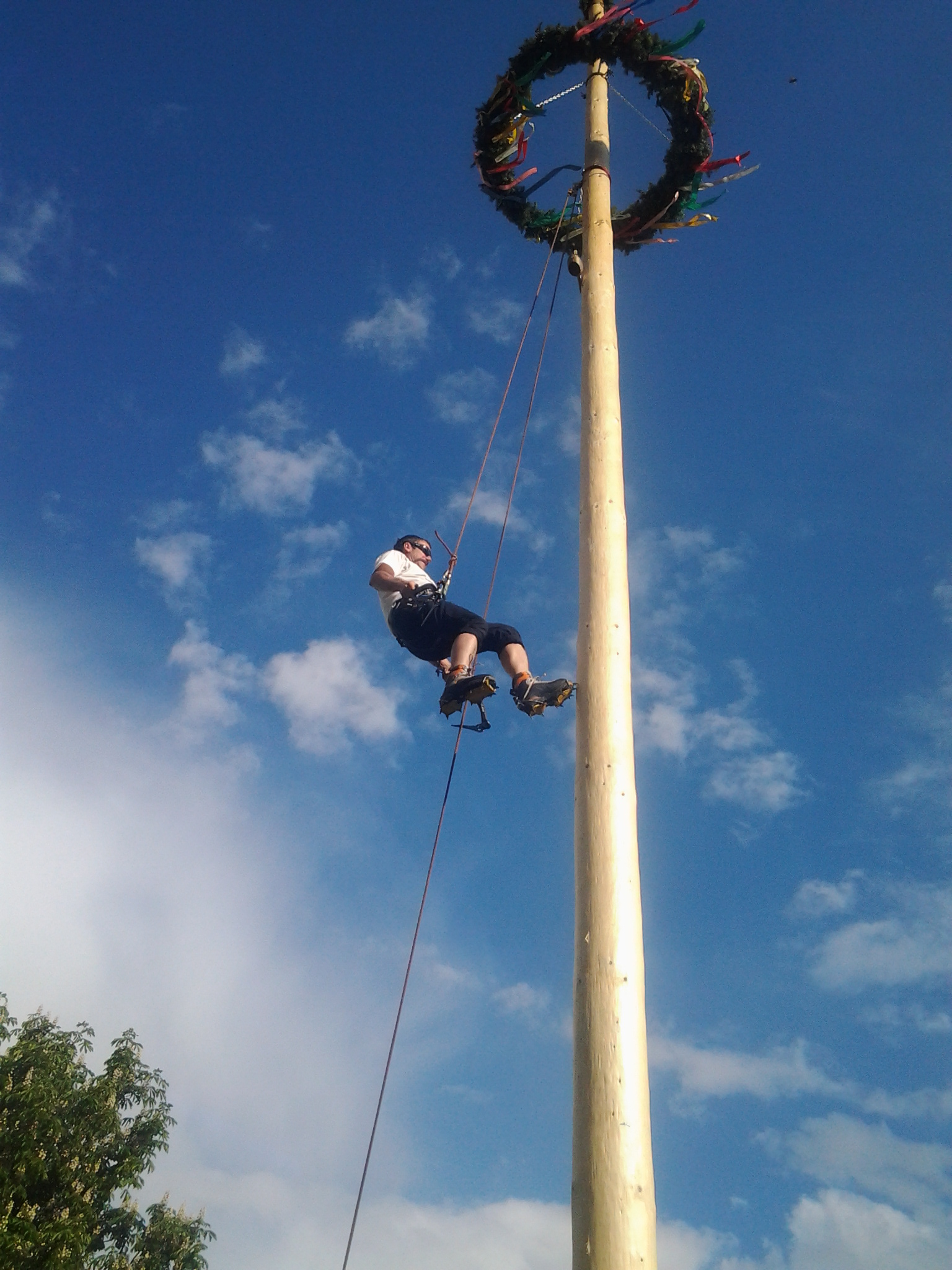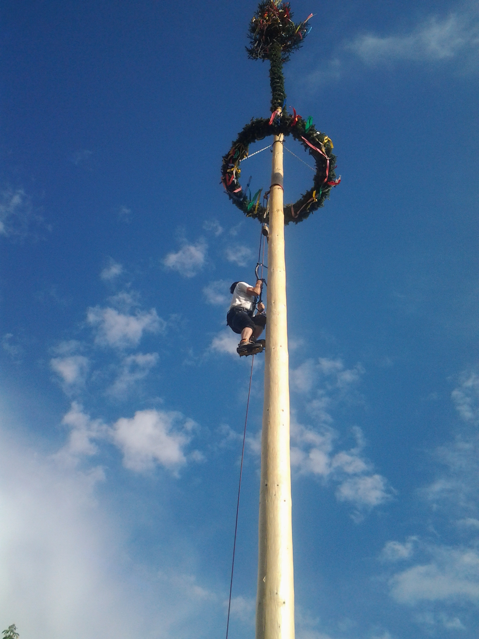 Am 1. Mai lud die Volderer Brauchtumsgruppe zum jährlichen Maifest auf den Volderer Kirchplatz. Bei freiem Eintritt, unterhaltsamer Musik und bester Verpflegung zeigte sich auch der Wettergott gnädig und schickte schönstes Frühlingswetter, welches dem Fest zu einem späten Ausklang verhalf. Mit dabei war auch wieder eine kleine Abordnung der BR-Wattens, die die Sicherung der Maibaumkraxler übernahm und am Ende des Tages für einen wohl eher unerwarteten Showact sorgte. Robert konnte eine lang ersehnte Erstbegehung abhaken und die Aufmerksamkeit der verbliebenen Festgäste gehörte auf jeden Fall uns 🙂