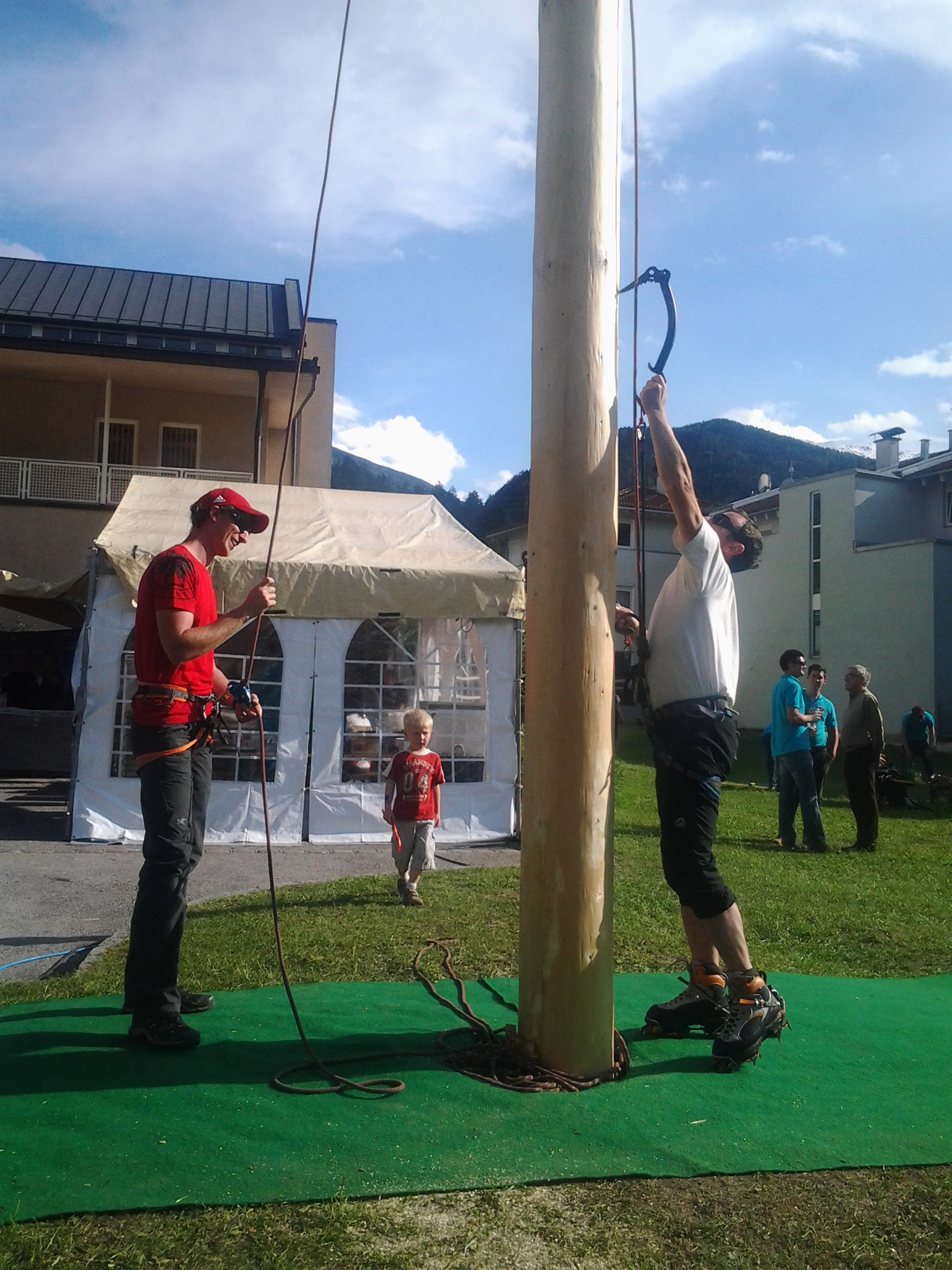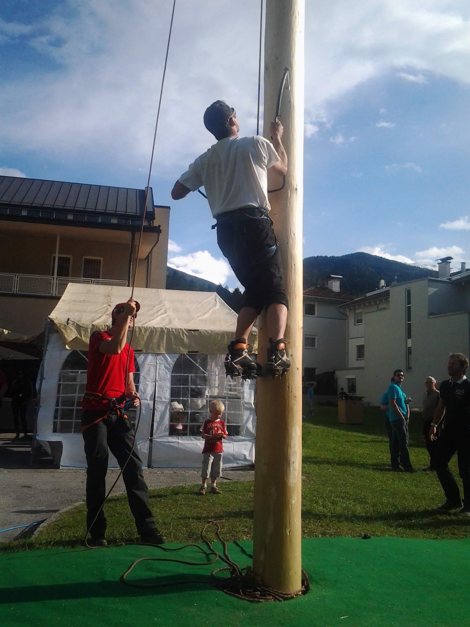 Robert setzt wohl zum ersten mal ein Eisgerät in einen Tiroler Maibaum