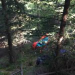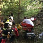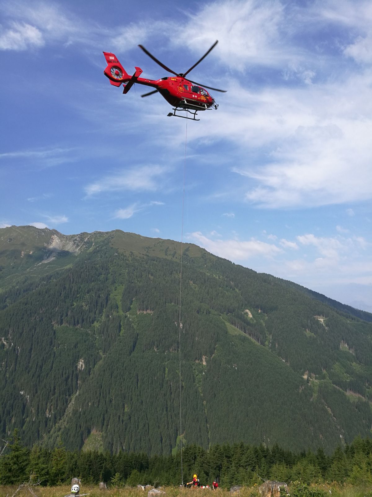 Auf Grund der ungünstigen Bergeposition, wurde die Patientin mittels Trage und Seilsystem durch den Wald und über die angrenzende Böschung transportiert. Von hier aus konnte der Notarzthubschrauber mittels Tau die Verunfallte ins nächstgelegenen Krankenhaus bringen.
