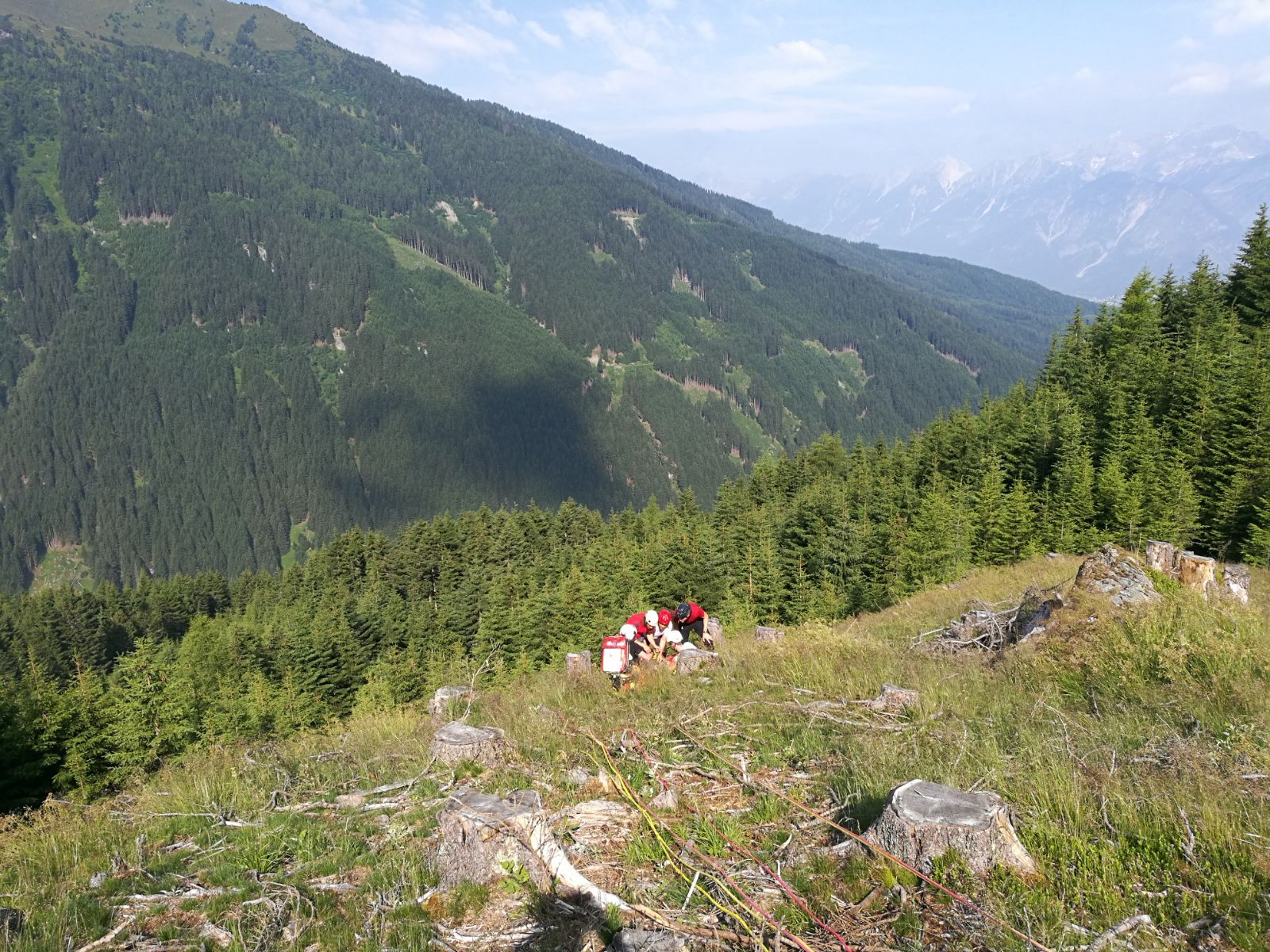 Am Morgen des 24. Juni rückte die Bergrettung Wattens mit sechs Mann zu einer Personenrettung im Bereich Infanglam am Wattenberg aus. Die verletzte Person erlitt nach einem Sturz in einem lichtungsnahen Waldbereich Verletzungen am linken Knie und war nicht mehr im Stande sich aus eigener Kraft zur nächsten Zufahrtsmöglichkeit für ein Rettungsfahrzeug zu begeben.