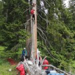Bergeübung. Bergung eines abgestürzten Gleitschirmpiloten aus einem Baum. Erklettern des Baumes, sichern des verunfallten, Versorgung des Piloten mit anschließender Bergung vom Baum und herrichten zum Abtransport.