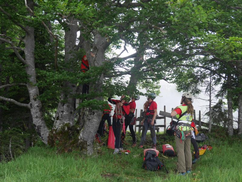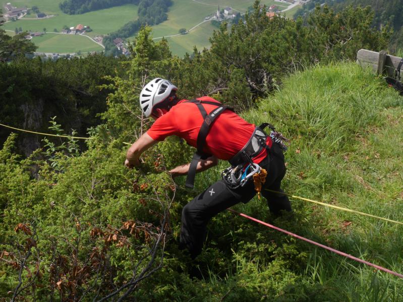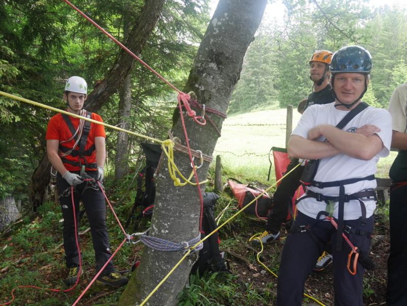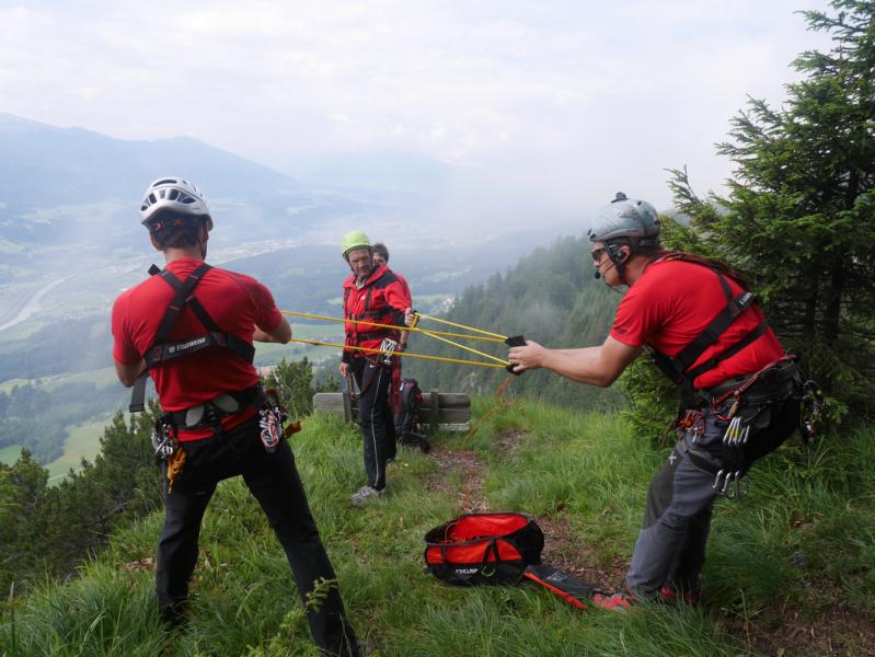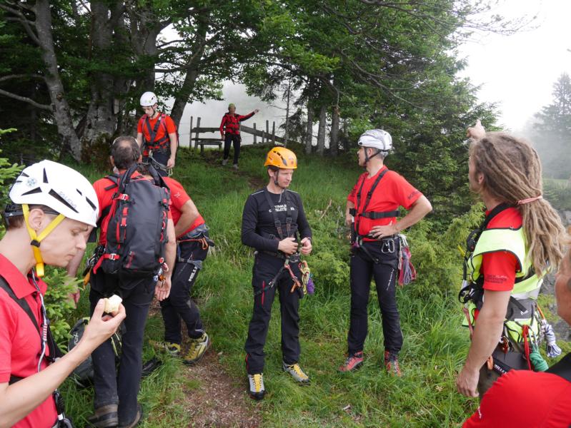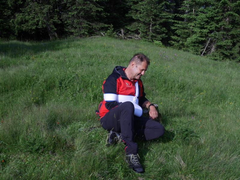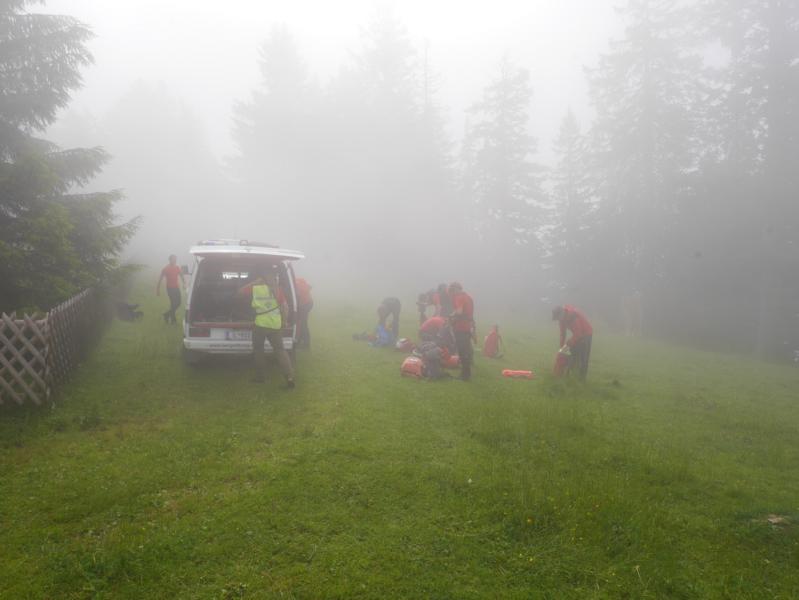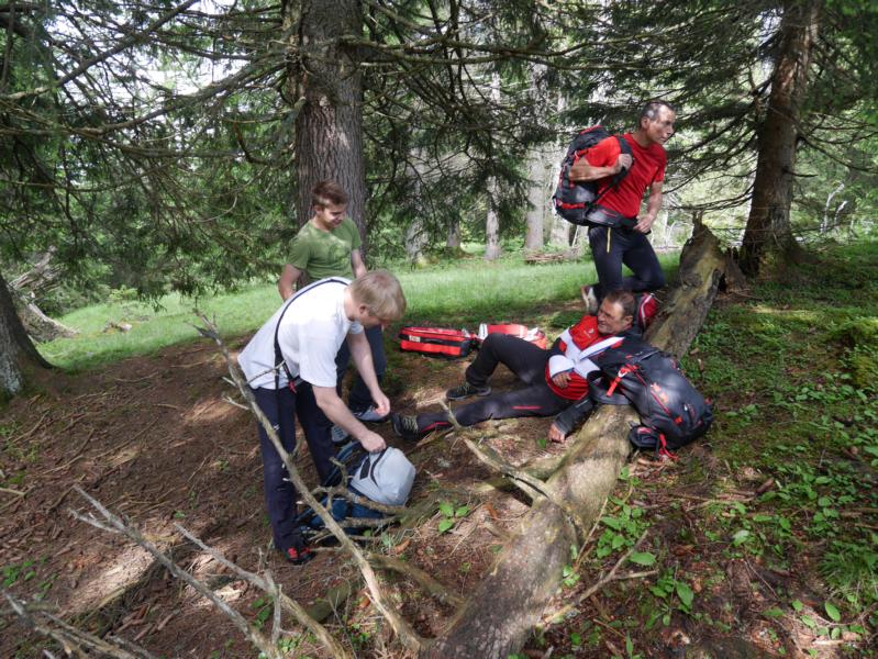 In Teil eins musste eine verletzte Person im Bereich des Walder Jöchl lokalisiert, erstversorgt und befragt werden. Sie war ansprechbar und konnte Angaben zu Ihrem ungefähren Standort machen. Allerdings gab sie an einen Unfall beobachtet zu haben. Auf Grund des Schocks musste die zuerst beruhig werden um nähere Informationen machen zu können. Hermann brillierte in seiner Opferrolle und konnte die Rolle dank einer leider realen Verletzung an der Schulter, die er sich bei nicht näher geklärten Ereignissen zugezogen hat ;), sehr realistisch darstellen. Danke Hermann für die Mithilfe!