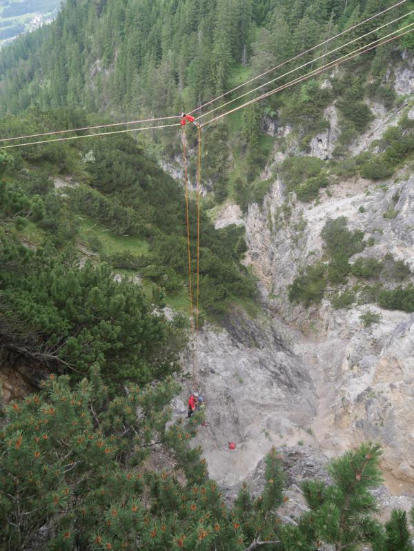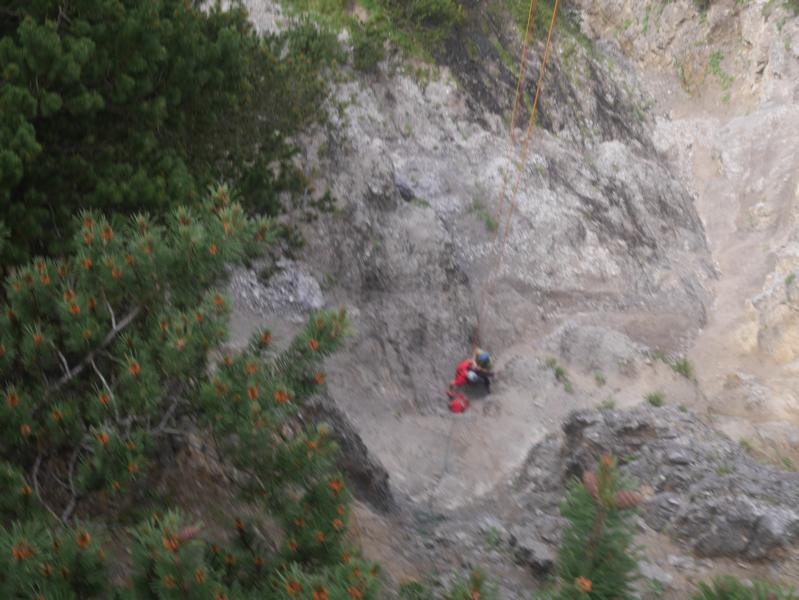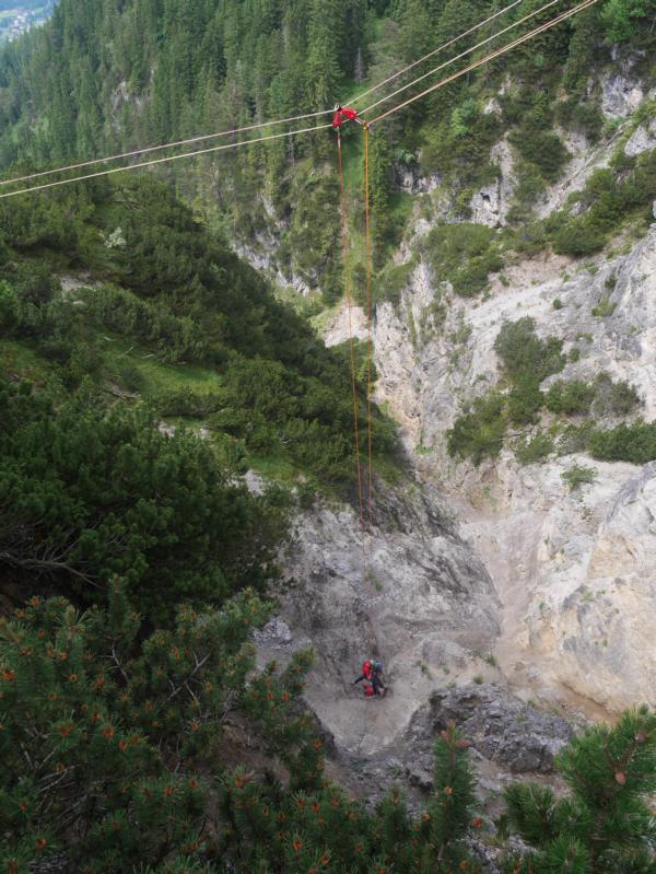 Nachdem der Unfallort der zweiten Unfallstation bekannt war, lief parallel zum Abtransport von Hermann die Such- und Rettungsaktion nach der zweiten Person an. Diese hätte ursprünglich von Ephräm dargestellt werden sollen, wurde jedoch wegen künstlerischen Differenzen durch einen gefüllten Rucksack ersetzt. Als Schauplatz diente hierzu ein zuerst unscheinbarer Graben unterhalb der Walder Alm. Schnell war den klar dass die sicherste Bergung für Mannschaft und den fiktiven Verletzten wohl mittels Seilbahn erfolgen. Auch dies funktionierte großteils reibungslos und konnte von der Mannschaft unter der Leitung von Dave, der seine Premiere als EL feiner durfte, selbständig und souverän gelöst.