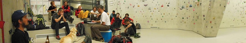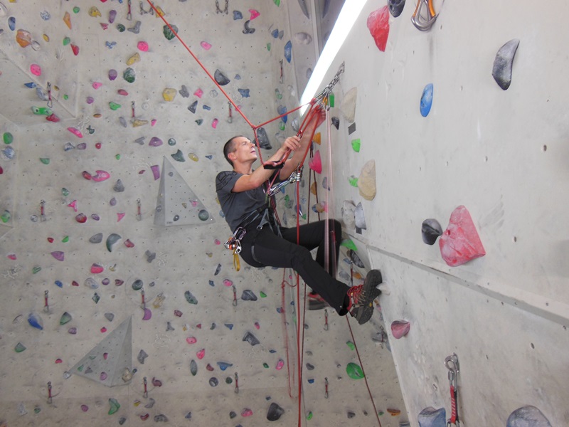 am 04.05.2015 wurde der BR-Abend in der Kletterhalle abgehalten und zur Übung von Selbstbergetechnik genutzt.