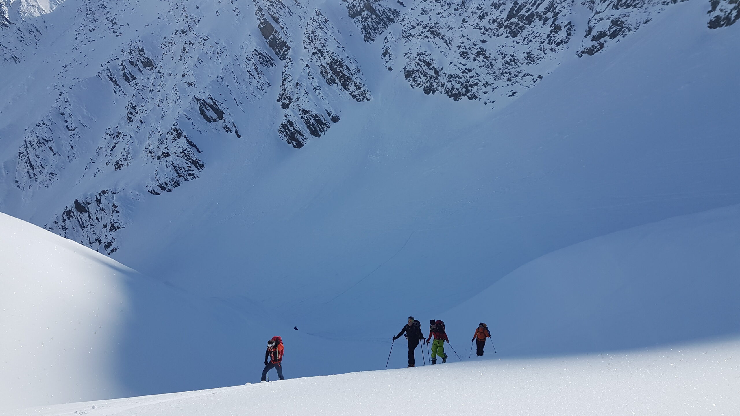 Wir nutzten ein lokales Wetterfenster im Kühtai für eine weitere gemeinsame Übungsschietour. Bei triestem Wetter verließen wir Wattens Richtung Haggen, von wo aus wir zum Zwieselbacher Rosskogel aufstiegen. Wir erhofften uns nur etwas Pulver; bekommen haben wir eine wunderbare Tour bei Kaiserwetter und guten Schneebedingungen.